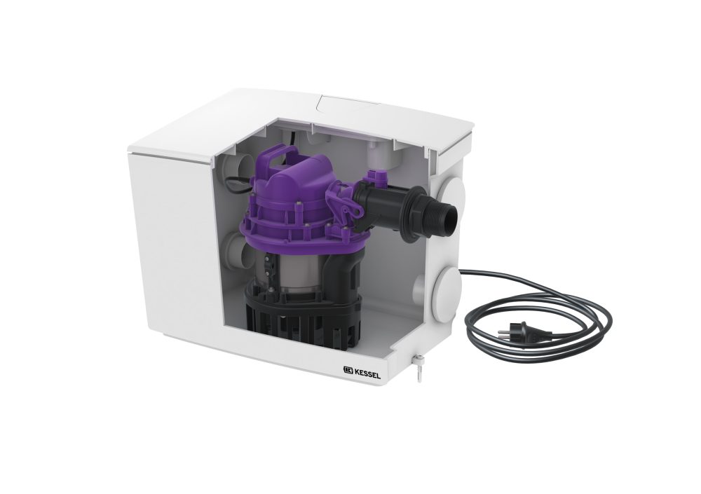 The Minilift S is available with a 300, 500 and 1,000 watt pump up to a maximum flow rate of 14.5 m3/h, each of which is also resistant to hot water and brine in the resistant version. “The new product development is therefore also suitable for washing machines, water softeners and heating systems. Due to its functionality and versatility, it can be individually adapted to local conditions and is perfect for renovations,” explains Jan Martin, Product Manager Pump Technology at KESSEL AG.