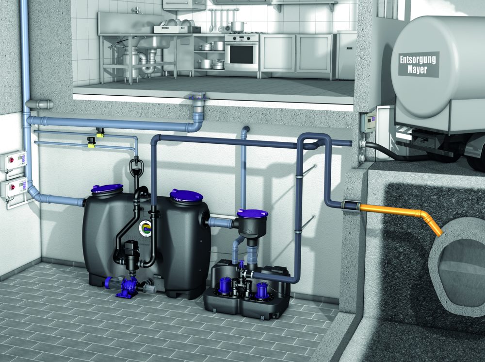 Grăsimile, uleiul și unsoarea – cunoscute ca FOG în industrie – nu au ce căuta în apele uzate. În cazul în care cantități mari de FOG pătrund în canalizări, pot cauza daune considerabile și pot duce la coroziune, mirosuri și blocaje. În ultimii ani, canalizările din Londra au ținut prima pagină a ziarelor, odată cu descoperirea unor imense cantități de grăsime. Pentru a preveni acest lucru, este obligatoriu ca în aproape toate întreprinderile în care există ape uzate cu grăsime să fie utilizate separatoare de grăsime, care sunt proiectate și dimensionate în conformitate cu standardul european EN 1825, de exemplu în restaurante, bucătării industriale sau măcelării. Separatoarele de grăsime înlătură în mare parte grăsimea și uleiul din apa uzată, înainte ca aceasta să fie evacuată în canalizare. Însă, ce separator este corespunzător pentru ce domeniu de utilizare și ce sistem este conceput pentru ce situație de instalare? Separatoarele sunt frecvent amplasate în subsoluri înghesuite, ceea ce face dificilă instalarea lor. În același timp, oaspeții nu trebuie să fie expuși la posibilele mirosuri eliberate în timpul procesului de evacuare necesar.