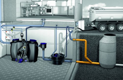 Hybrid lifting stations are suitable for use in single-family homes, as well as for large volumes of wastewater in the XL version. Even in the event of a power failure, the Ecolift ensures reliable drainage. In this case, the wastewater is dis-charged into the sewage system via the slope of the drain-age piping. “Ecolift is the only lifting station that also drains without electricity. This is particularly important for use in commercial buildings, where operation without interruption is often required”, explains Priller. Thanks to the battery buffering, sufficient safety is ensured even in the event of a prolonged power failure. If the battery buffering’s voltage falls below a corresponding limit value after a longer period of time, the electric motor-driven backwater flaps are closed with the remaining battery voltage. In this way, the building is even protected against backwater under such circumstances.