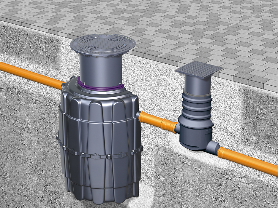 According to EN 752-1, a downstream twin lifting station (Figure 5) is required if the grease separator is installed below the backwater level, or if gravity flows to the wastewater network are not feasible.
