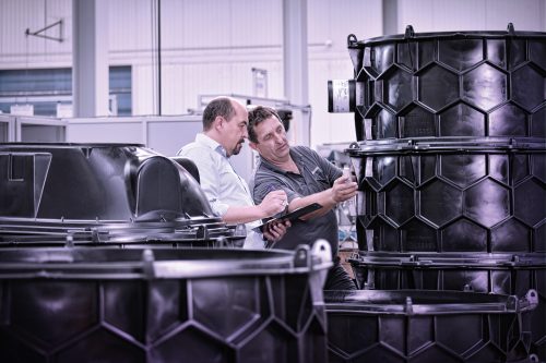 Wie erwähnt kommt hier vor allem die jahrzehntelange Expertise von KESSEL in der Entwässerungstechnik sowie die Produktqualität und -verarbeitung zum Tragen – aber auch unsere Mitarbeitenden! Sie sind mit den KESSEL-Produkten und dem neuesten Stand der Technik bestens vertraut, denn sie müssen immer auf Augenhöhe mit Planern und Installateuren vor Ort kommunizieren und sich bei Änderungen und Problemen immer neu in die Themen hineinversetzen können. Gerade dieser stete Austausch in allen Projektphasen ist ein elementarer Faktor. Von der Bestandsaufnahme der örtlichen Begebenheiten, der Berücksichtigung aller Kosten, geltenden Normen und Vorschriften, den detaillierten Konstruktionszeichnungen, über die Fertigung und Qualitätskontrolle bis zum Transport, der Vor-Ort-Montage und Inbetriebnahme sind die interne Kommunikation und der Kontakt mit den Kunden sowie Fachhandwerkern die Basis für den nachhaltigen Erfolg eines Projekts.