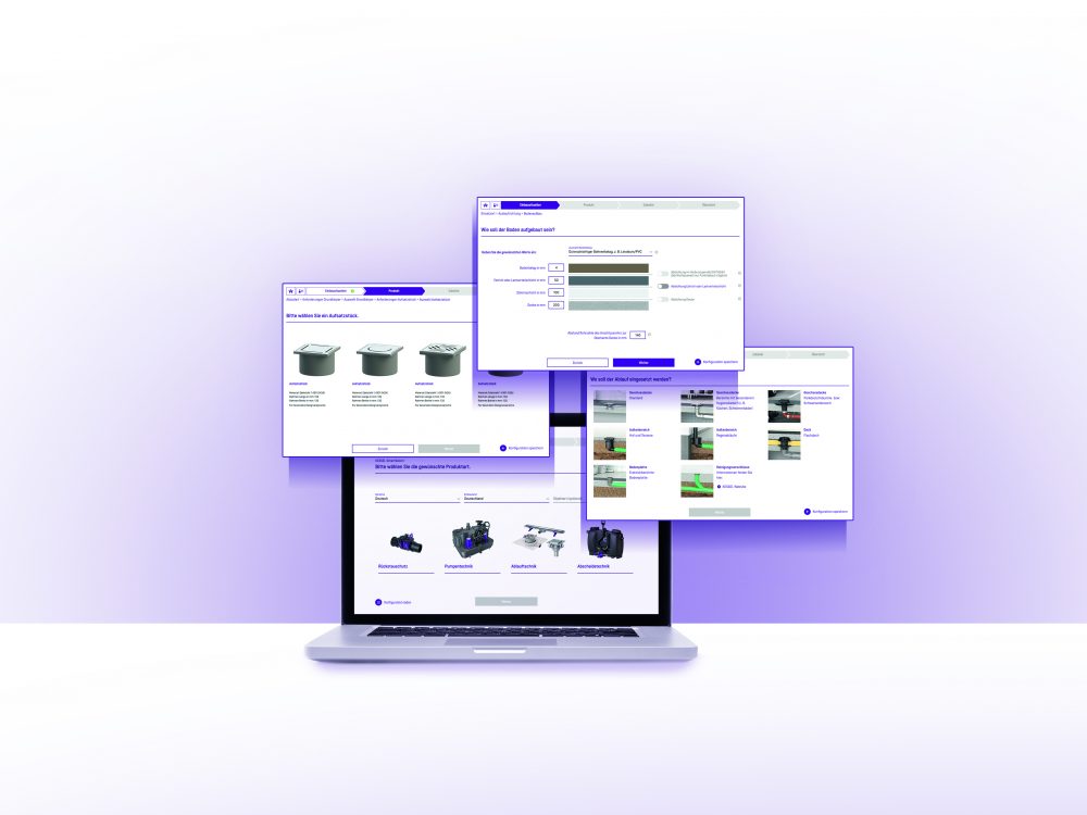 When starting out in the design phase, the installation situation must be defined. This includes selecting the installation location (floor, outdoor area, roof or floor slab), as well as the desired outlet direction. In order to specify the floor structure, information on the different floor construction layers and the types of waterproofing are also needed. After selecting the desired requirements for the drain (nominal size, fire protection, lateral drain), suitable drain bodies are displayed in the next step. Once this has been selected, the process is repeated for the suitable upper section: the requirements here relate to the material used for the grate cover, the load class and the degree to which the installation can be adjusted/locked. Finally, KESSEL offers a range of accessories that are optionally available, such as odour traps, hair filters or sludge buckets. The process is concluded by the user receiving a summary of the configuration, a material list with all the individual items required for this; the BIM data of all products can also be downloaded and the relevant descriptive texts can be displayed.