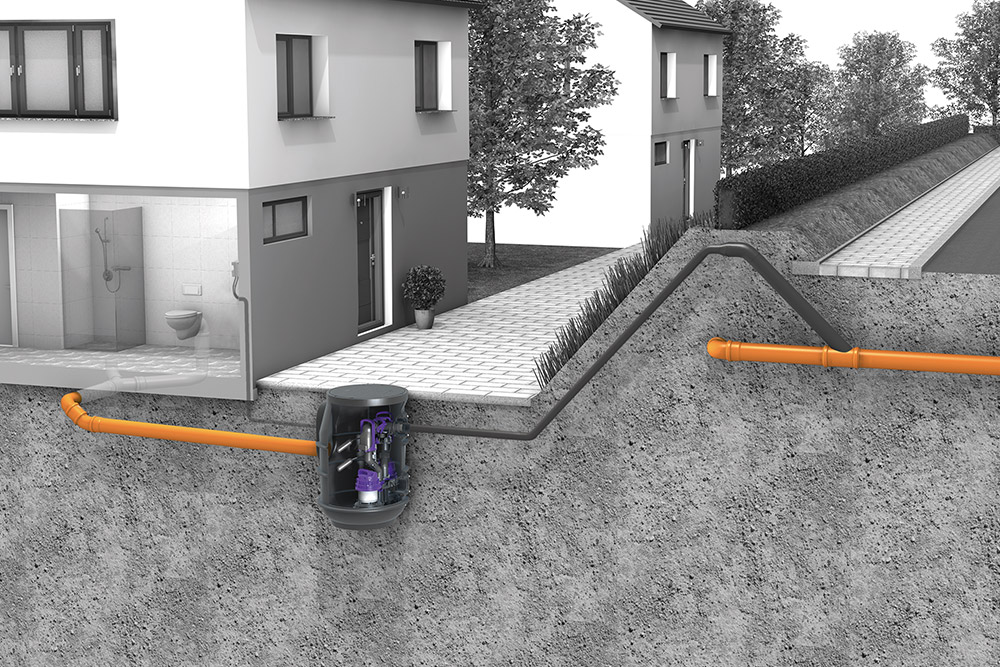 Le poste de pompage se compose d’un bac compact, facile à monter, et d’une puissante pompe déjà intégrée, destinée aux eaux noires. Cette installation est disponible en versions simple et double. En outre, elle est dotée d’un clapet antiretour protégeant contre les refoulements. Selon la version en présence, la pompe est commandée par un ou trois flotteurs. Le poste de pompage présente une profondeur de pose de 440 mm qui, grâce à une rehausse disponible en option, peut être portée à 880 mm. En cas de pose à enterrer, cette rehausse permet d’adapter facilement le bac au niveau du sol. Une installation à même le sol est également possible. Un véritable atout en matière de maintenance et d’entretien : la pompe peut facilement être retirée à la main grâce à un verrouillage par baïonnette, sans outil et sans avoir à pénétrer dans le regard.