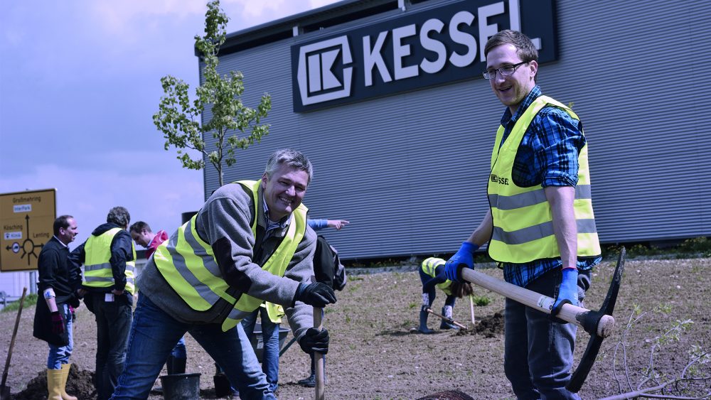 Auszubildende des Entwässerungsspezialisten KESSEL unterstützen mit Baumpflanzaktion Wiederaufforstungsprojekt des Bayerischen Staatsministeriums für Ernährung, Landwirtschaft, Forsten und Tourismus.
